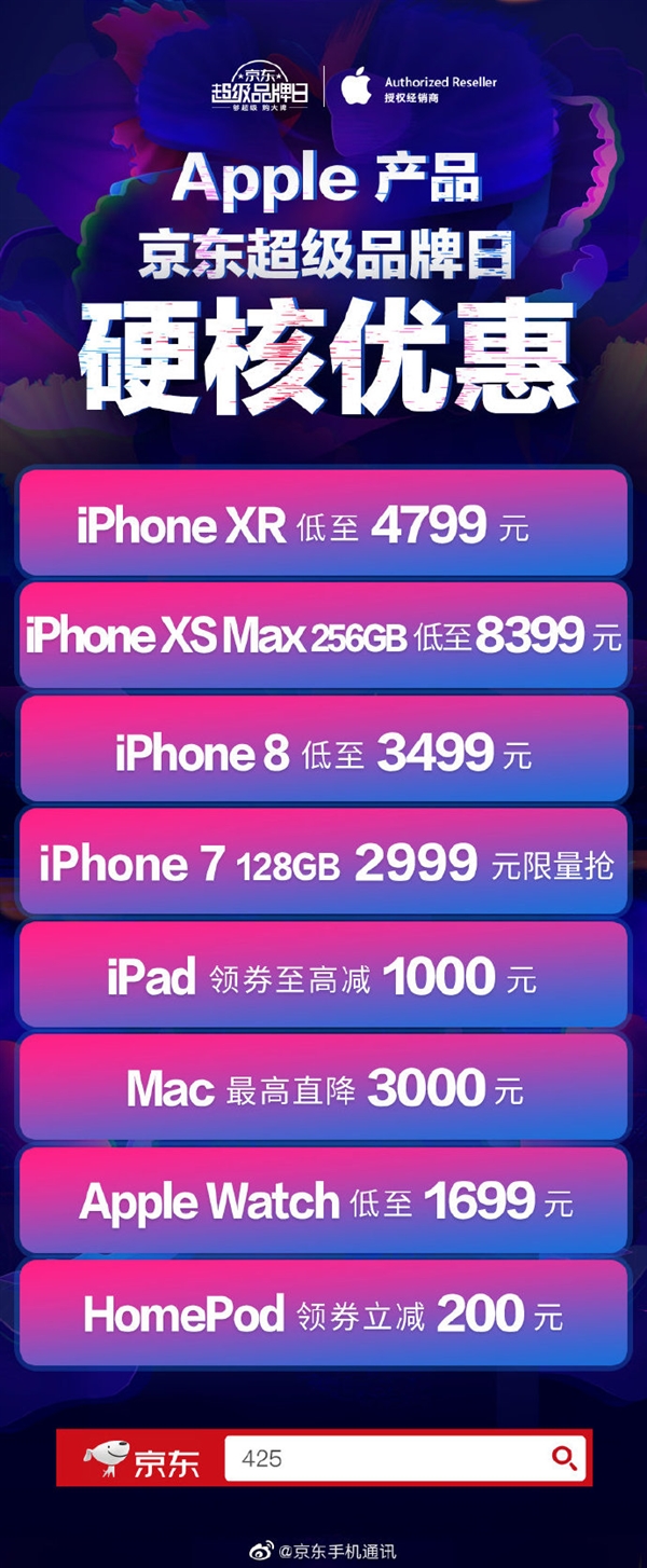 4月25日,京东超级品牌日,苹果产品将迎来新一波优惠,其中iPhone XR低至4799元,刷新京东平台历史最低价。