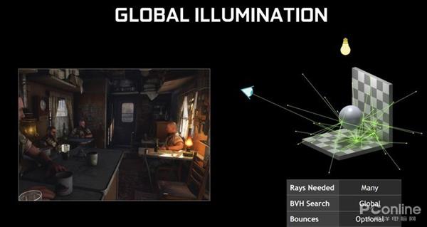 全局光照应该是目前光追特效中运算量最大的了,它能模拟光源照射到物体后反射、折射、焦散等自然光效。